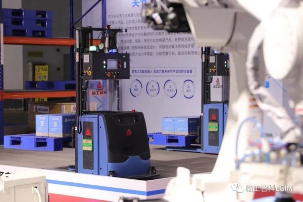 臨工智科多方位的展示了關(guān)節(jié)機(jī)器人、無人叉車、AMR的作業(yè)場景